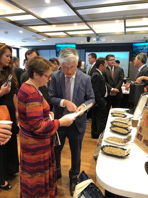 “O Ministério da Agricultura do Brasil não só apoia e também tem as portas abertas para facilitar todos aqueles que importam e fazem do nosso café esse produto espetacular”, disse. Antes do evento de promoção, ela teve um encontro com o CEO da UCC, Fumihiko Asada.