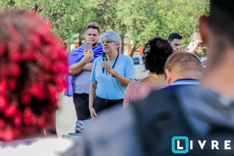 Durante o ato com profissionais e alunos, Myriam Serra apontou e criticou o que chamou de “liberação dos recursos a conta-gotas” e explicou como funcionará o orçamento da universidade.