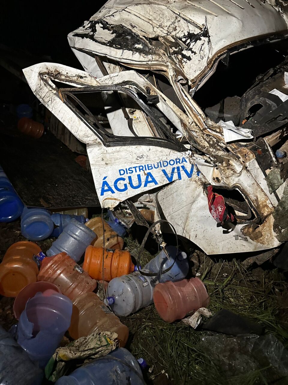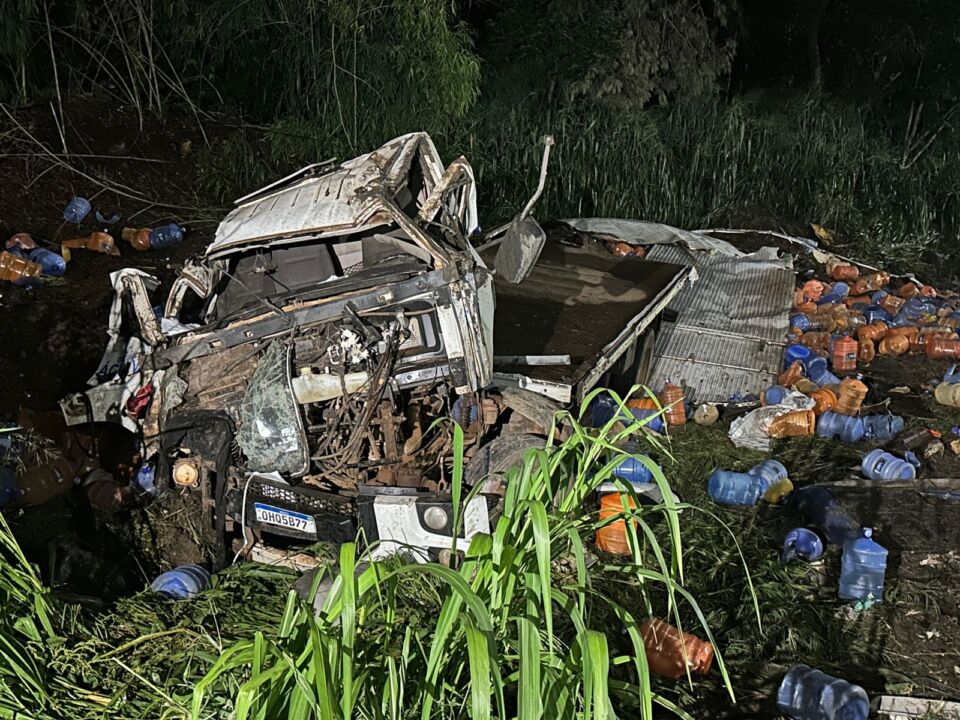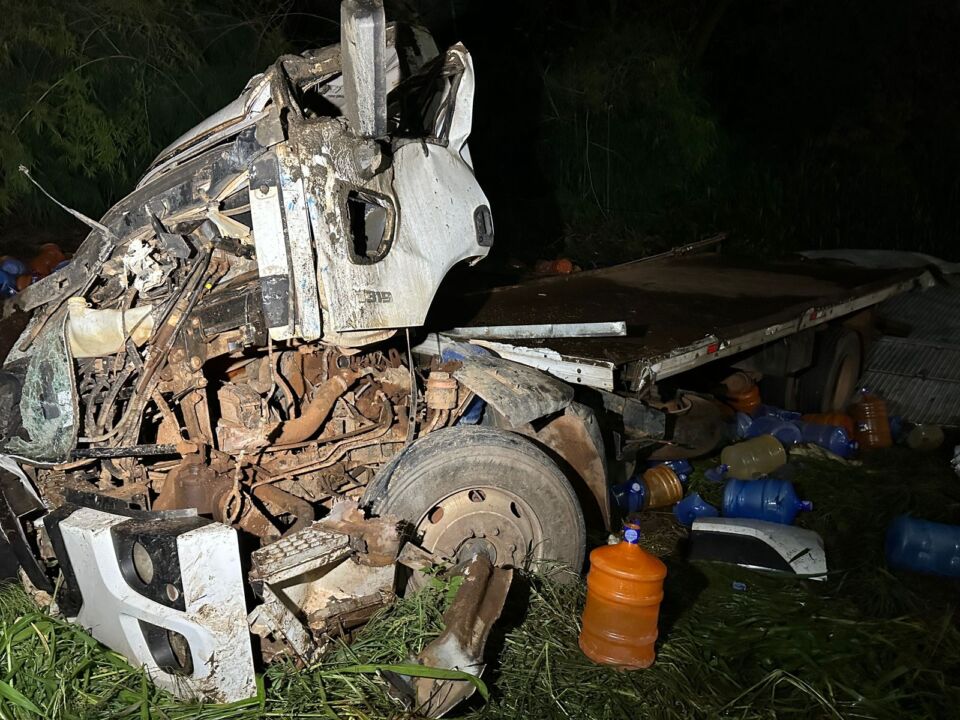 Imagens do local mostram que o caminhão ficou completamente destruído. O acidente também causou o rompimento de dois cabos de internet na Serra de São Vicente.