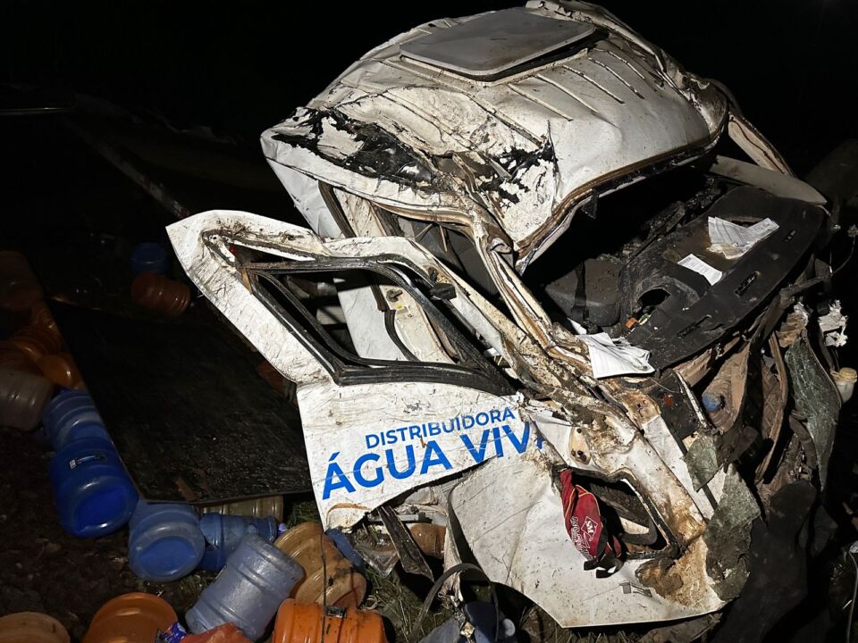 Um caminhão carregado de galões de água tombou no início da noite de ontem (22), no KM 349 da BR-364, em Santo Antônio de Leverger, a Serra de São Vicente, e caiu na ribanceira.