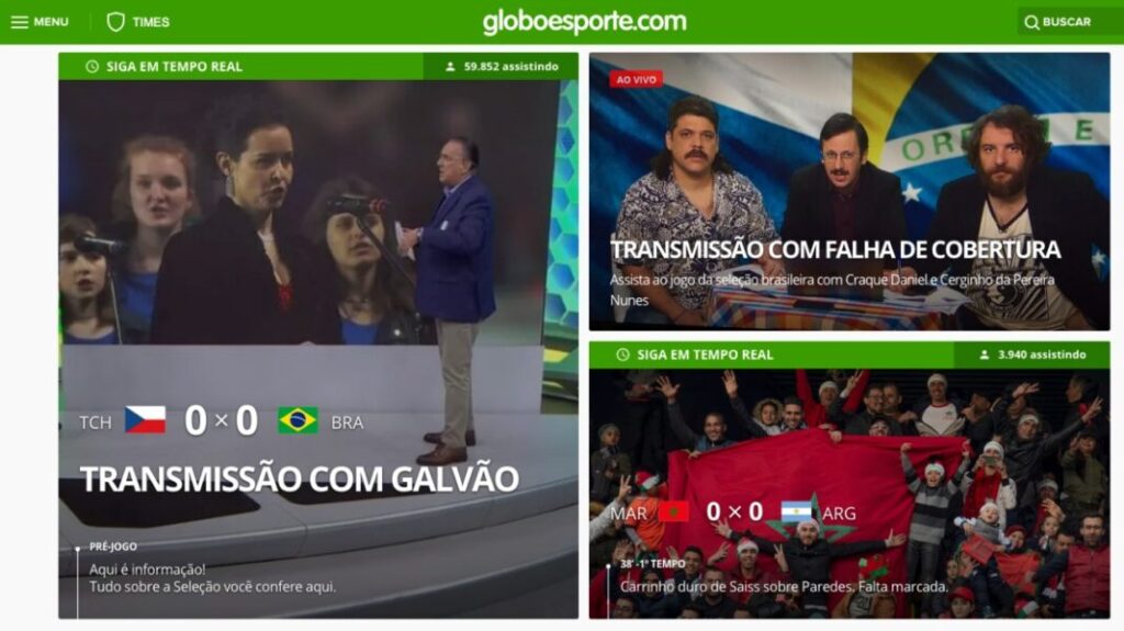 O portal de notícias Globo Esporte resolveu inovar na transmissão do jogo da seleção brasileira nesta terça-feira (26). Com narração e comentários do trio, Craque Daniel, Cerginho e Poeta, o portal decidiu fazer uma cobertura paralela à transmissão séria, feita pelo Galvão Bueno e conseguiu emplacar a #FalhaNaSeleção no topo do Trending Topics do Twitter, no Brasil.
