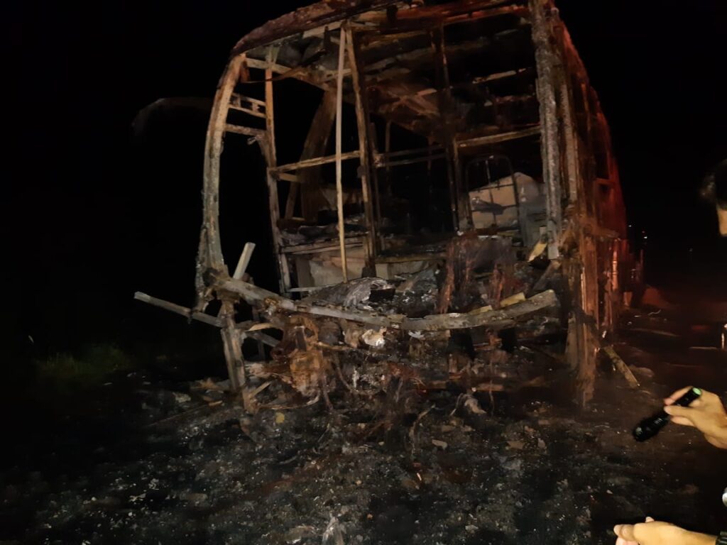 No ônibus, com placas de Mogi das Cruzes (SP), estavam 26 passageiros e o motorista. O veículo havia saído de Alta Floresta às 10 horas da manhã e seguia para Cuiabá.