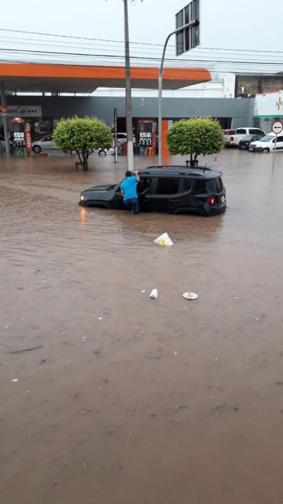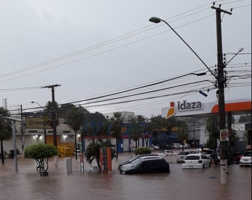 Pelas imagens que circulam na internet é possível ter noção da intensidade da chuva, que deixou, inclusive, carros boiando na avenida. O ponto crítico, conforme os leitores informaram por Whatsapp, é em frente ao colégio São Gonçalo, onde há um declive na avenida e também, de frente ao Shopping Popular.