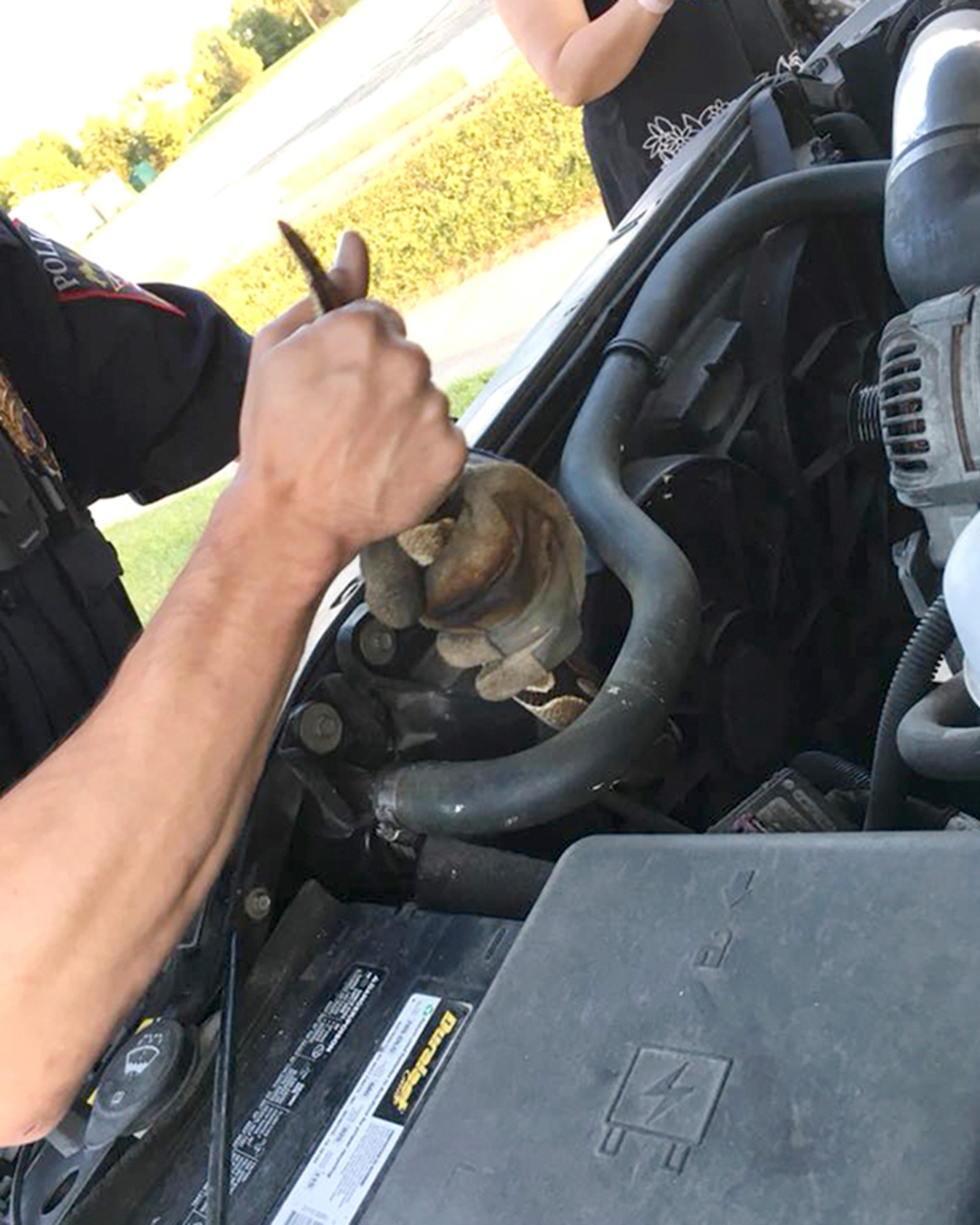 O motorista Chris Ngueyn percebeu que a direção de seu carro estava diferente e havia um barulho estranho próximo ao motor de seu carro. Quando Chris parou o carro para ver o que estava acontecendo, descobriu a cobra e chamou as autoridades.