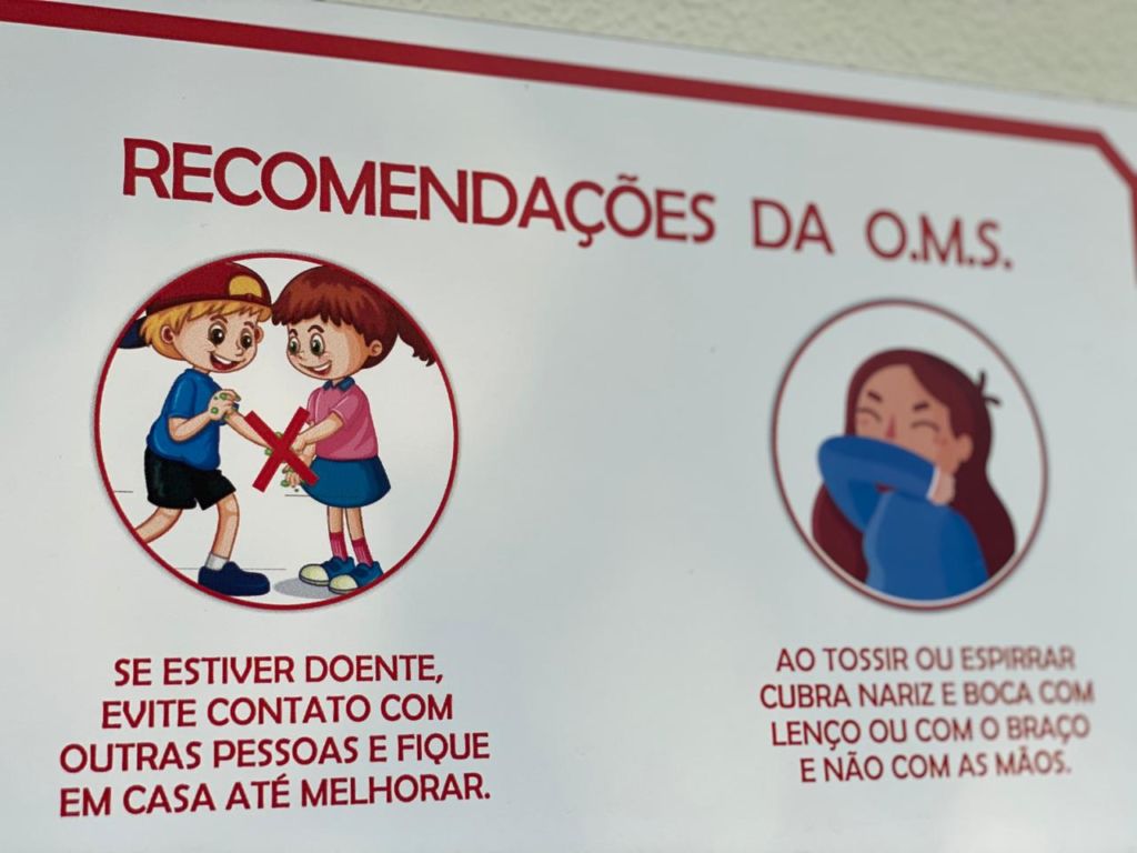 – Protocolo de triagem na entrada da escola, com uso de termômetro, tapetes de higienização dos pés, limpeza das mãos e dos pertences trazidos;
