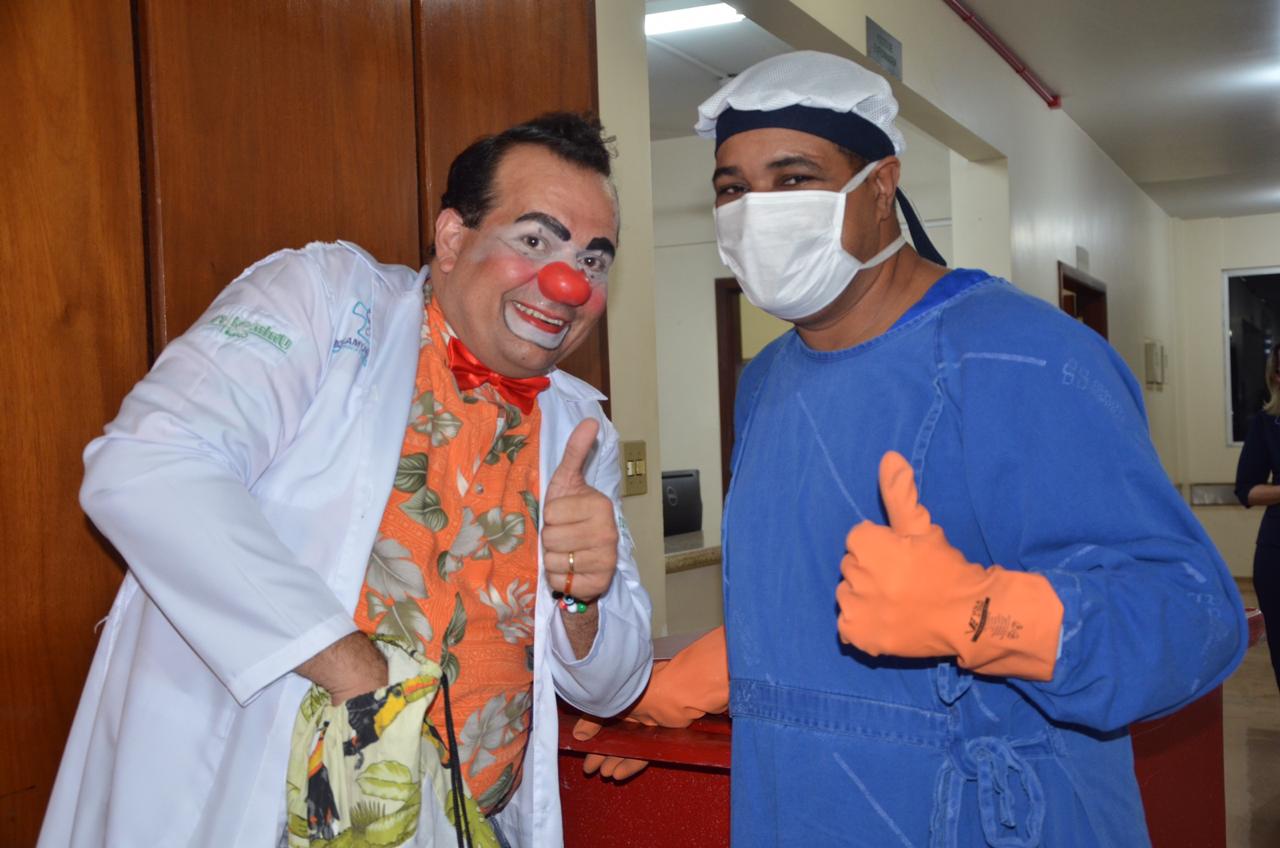 A palhaçoterapia foi iniciada no Complexo Hospitalar de Cuiabá na última segunda-feira (09) e contagiou os corredores do hospital com sorrisos e alegria. O grupo responsável pela atividade é conhecido como ‘Augustus’ e utiliza a metodologia de humanização para levar humor e gentileza para as pessoas nos hospitais. A terapia é reconhecida pelo Ministério da Saúde e propõe espalhar amor aos pacientes.