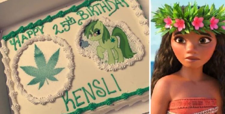 “Eu não tive a chance de contar sobre nossa experiência neste fim de semana com meu bolo de aniversário. Minha mãe ligou e me pediu um bolo e eu disse o quanto eu amava Moana. Bem, o confeiteiro pensou que ela disse marijuana – Felizmente o bolo ficou bom.”, escreveu.