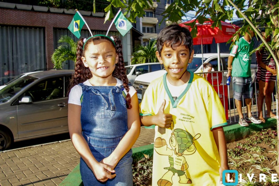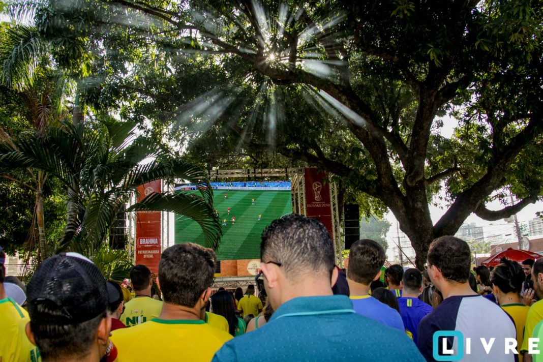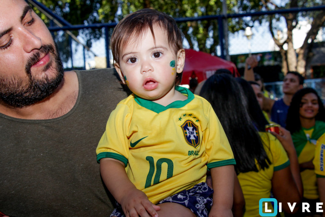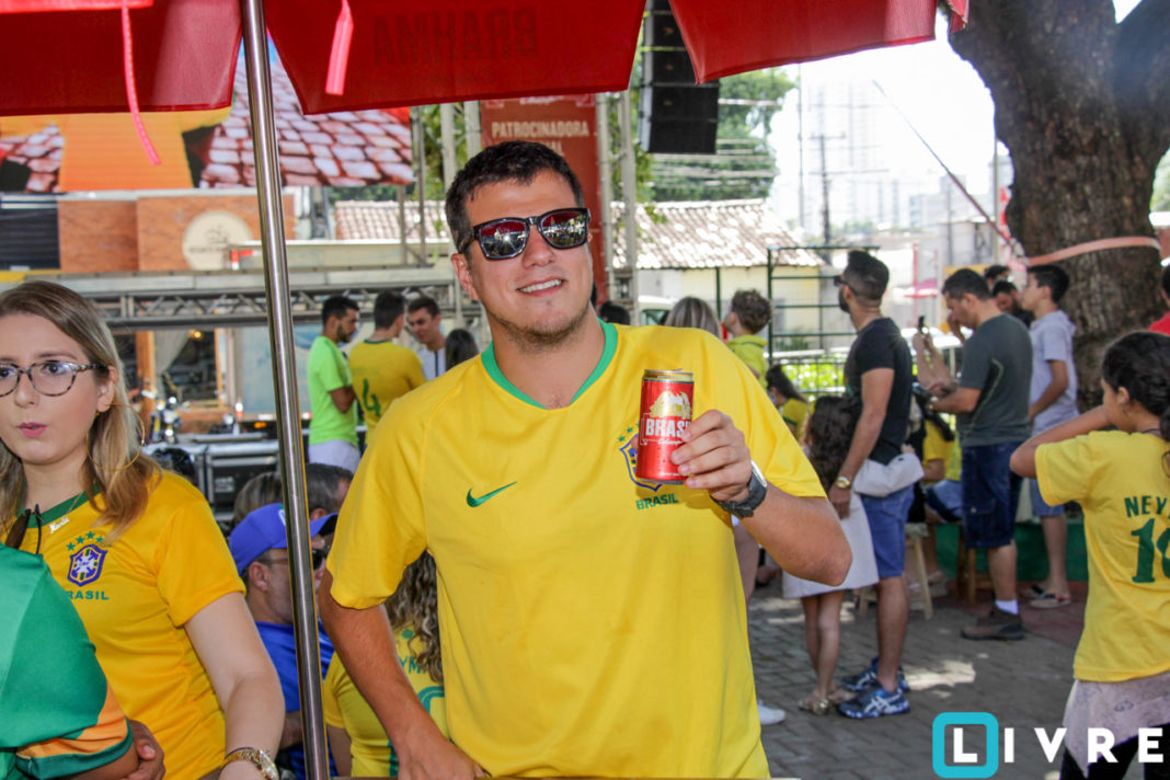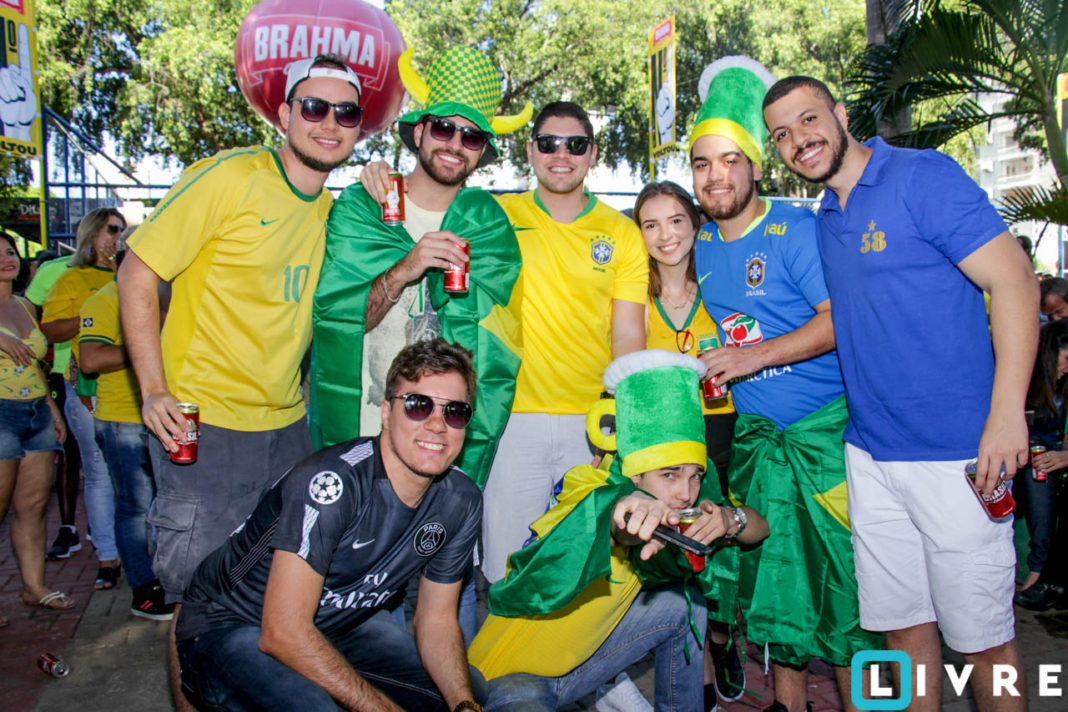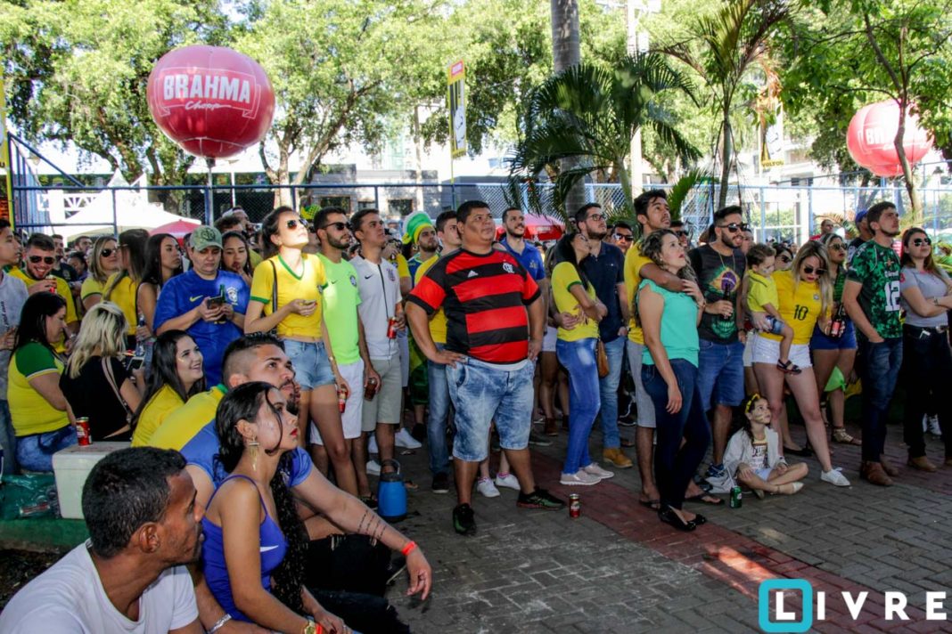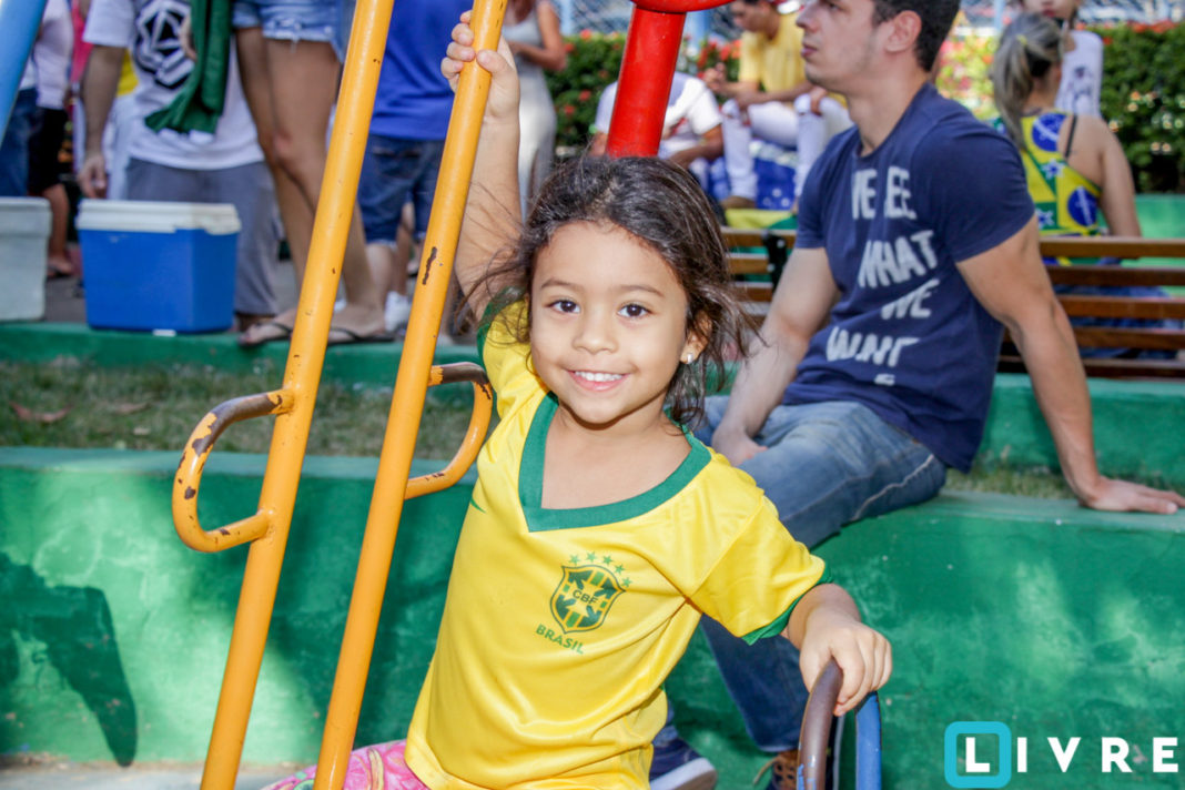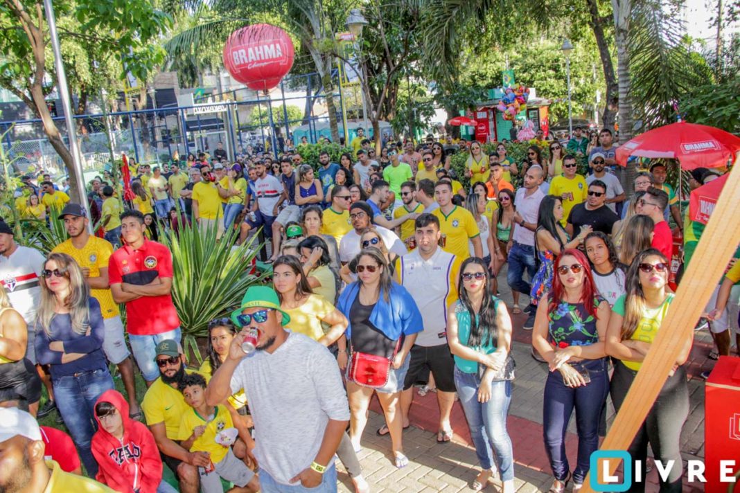 A cerveja Brahma em parceria com a Casa de festas e a empresa paulista Catraca, promoveu uma tarde para toda a família com telão instalado na parte central da praça. Crianças com rosto pintado e famílias vestidas de verde e amarelo, se acomodaram no chão da praça sob a sombra dos pés de manga. Confira!