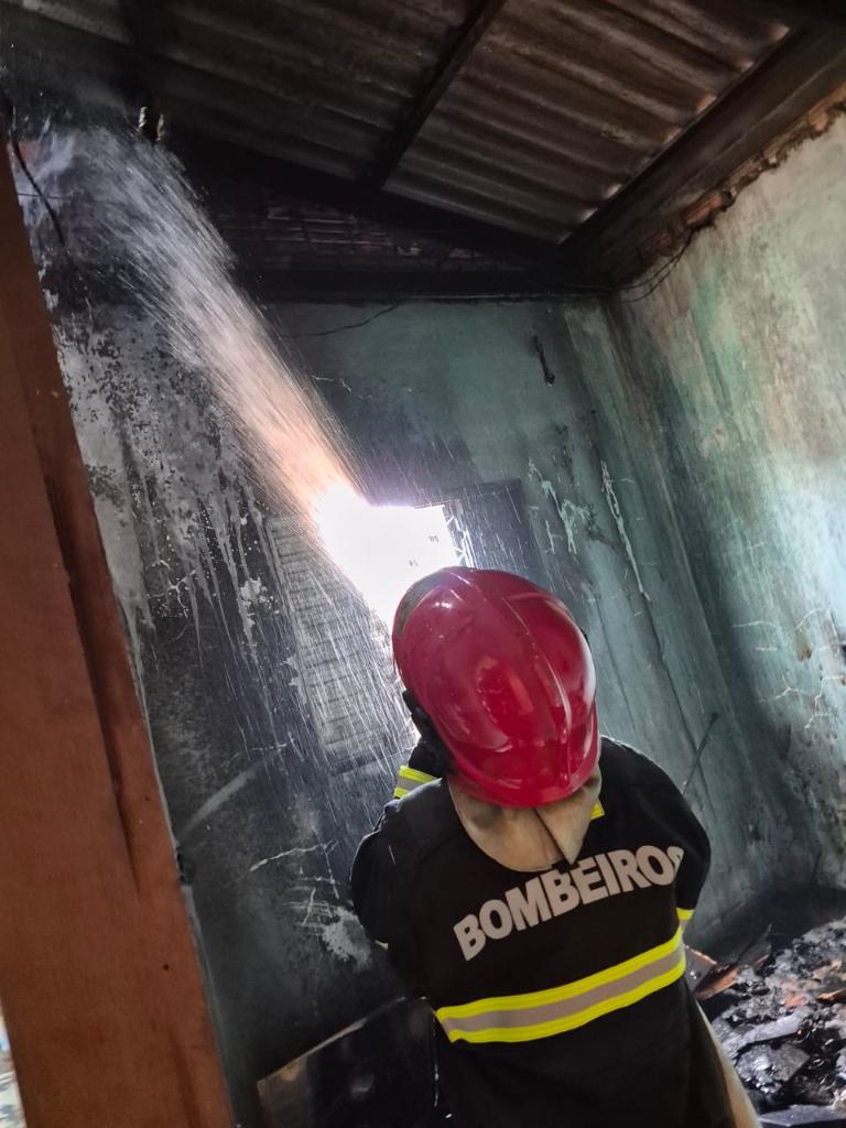 Corpo de Bombeiros faz extinção e rescaldo de incêndio em residência
