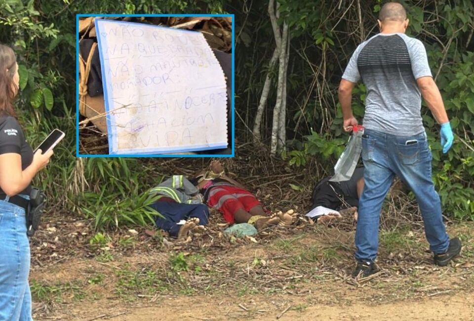Próximo aos mortos havia um bilhete com a frase: