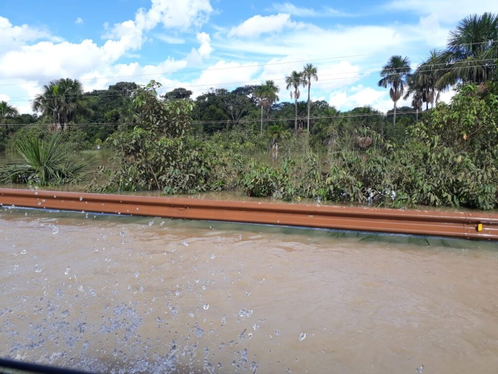 O córrego do Curupi, localizado próximo à entrada da MT-423, que liga Sinop ao município de Cláudia sentido Pará, transbordou e inundou um trecho da BR-163, após intensas chuvas que atingiram o município.