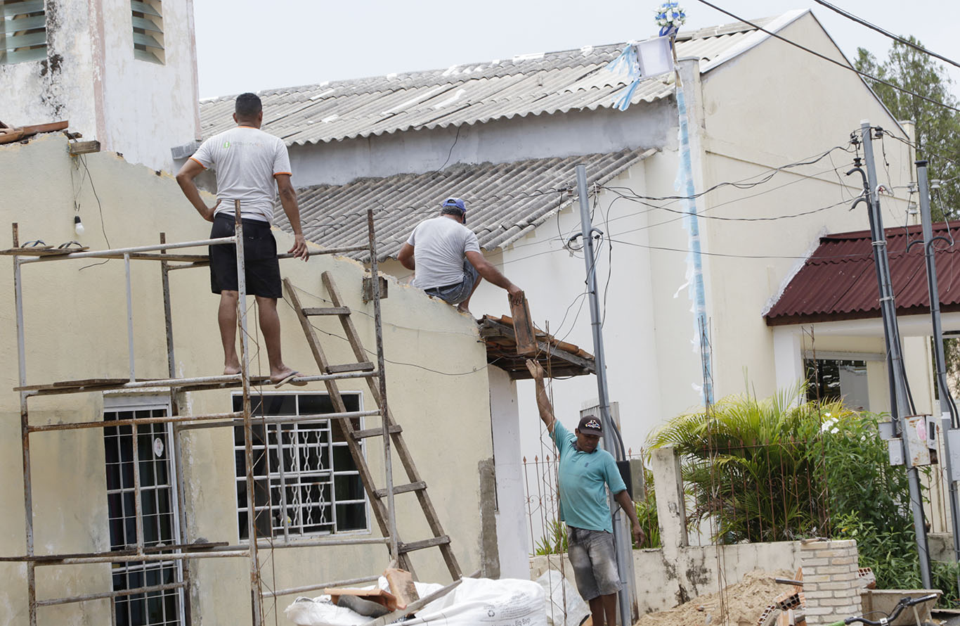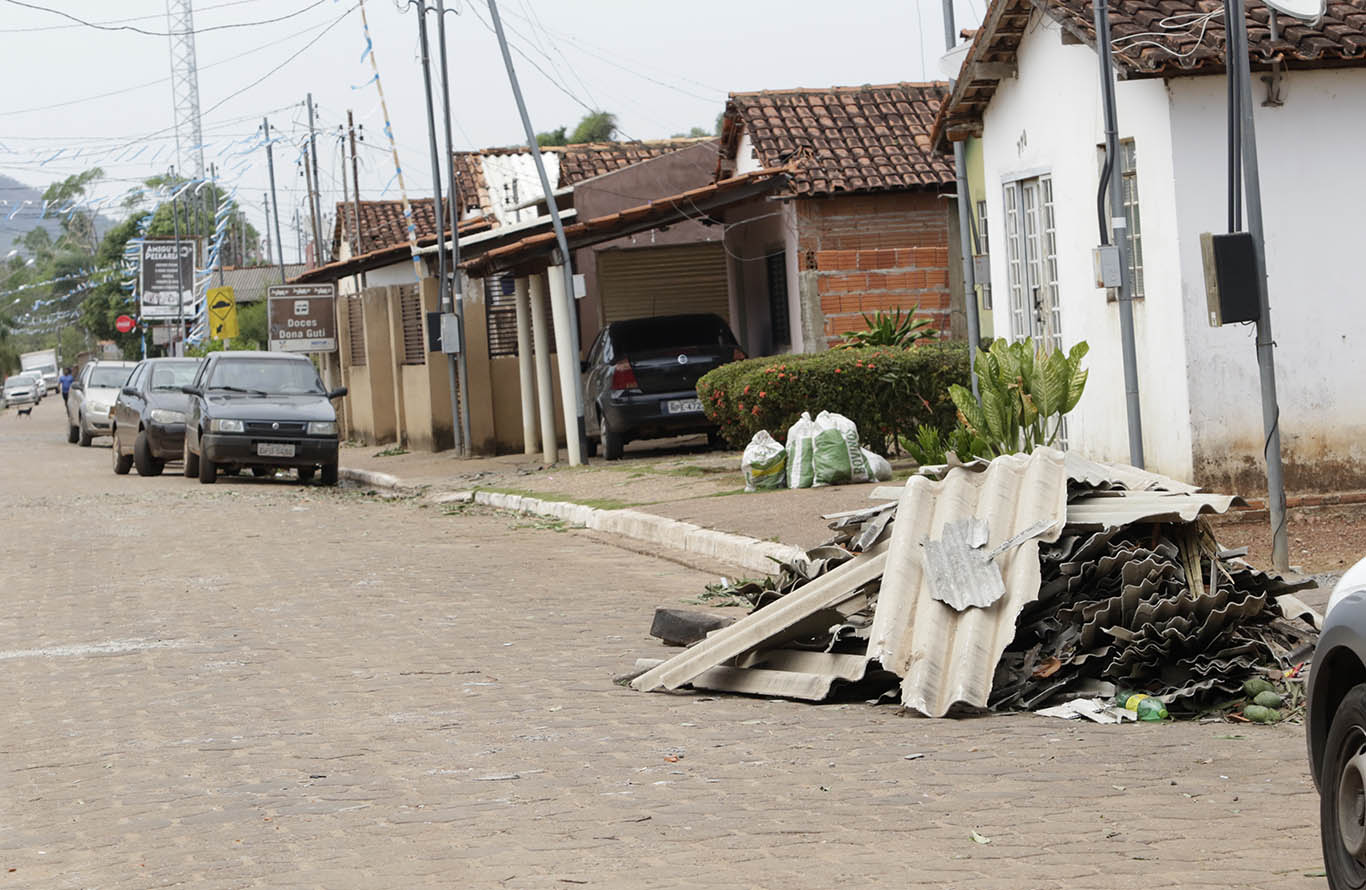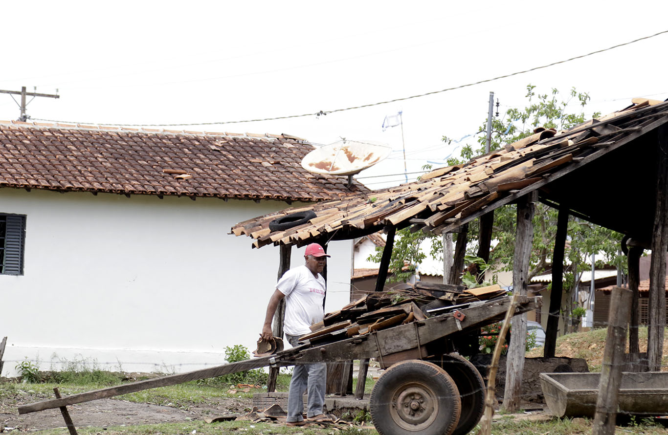 Moradores da Comunidade de Bonsucesso, em Várzea Grande (Região Metropolitana de Cuiabá), se reuniram para recolocar telhas nas casas e retirar os cacos que estavam espalhados pelo chão.