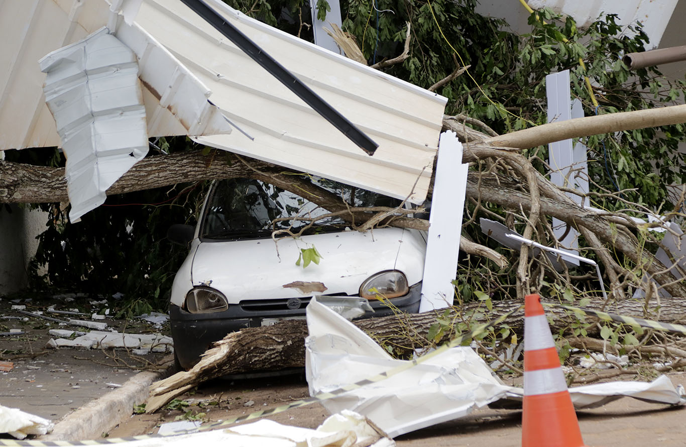 O local foi atingido por um vendaval no final da tarde de domingo (14) e, na manhã desta segunda-feira (14), o cenário era impressionante.
