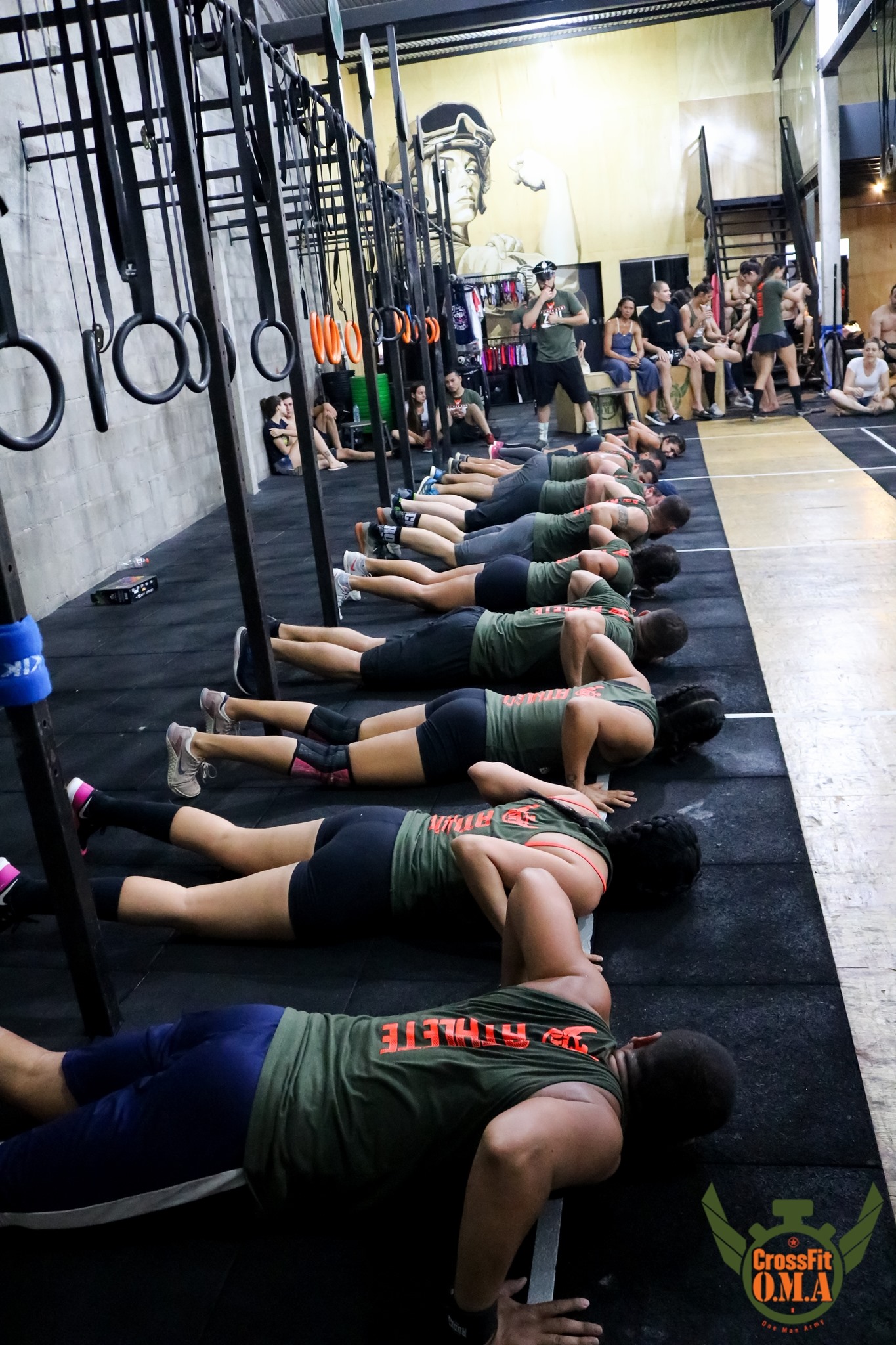 A arrecadação de alimentos foi a prova com maior pontuação do campeonato interno da CrossFit O.M.A. Das 7 equipes inscritas foi exigido o mínimo de 100 quilos de alimentos não perecíveis.