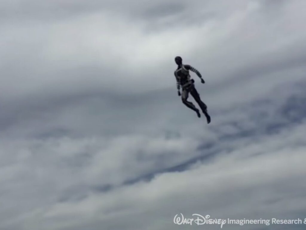 Mas uma nova leva de animatrônicos está expandindo os limites da engenharia de robôs: os engenheiros da Disney estão construindo agora robôs projetados para participar de acrobacias aéreas. Com a ajuda de guias lasers, acelerômetros e giroscópios, os robôs conseguem ajustar a sua posição no meio do vôo, alcançando aquela pose perfeita dos super heróis.