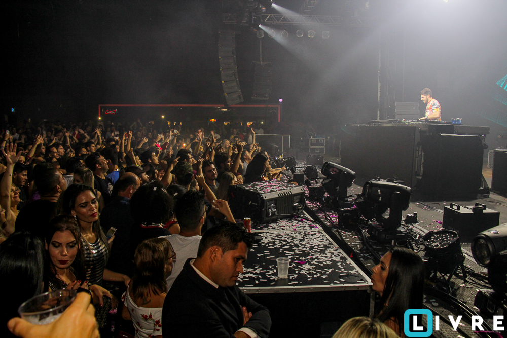 Pirotecnia, luzes, fumaças e muito confete que são marcas registradas do jovem Dj, transformaram a balada em uma noite glamurosa. Releituras de músicas de Tim Maia e até Mamonas Assassinas, fizeram parte da playlist.