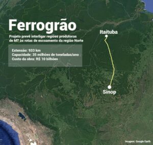 Com a edição da medida provisória 756 pelo governo, que alterou limites de unidades de conservação no trecho paraense da BR-163 (Cuiabá-Santarém), foi dado o primeiro passo para a licitação da Ferrogrão, uma ferrovia de 933 quilômetros, ligando Sinop, no coração da região mais produtiva do país, ao pequeno distrito de Miritituba, à margem direita do rio Tapajós.