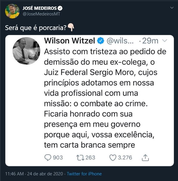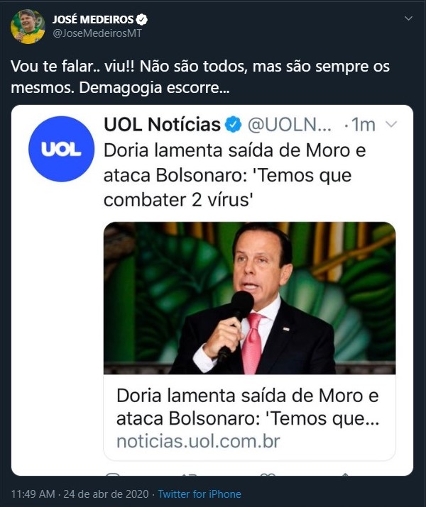 — JOSÉ MEDEIROS (@JoseMedeirosMT) April 24, 2020