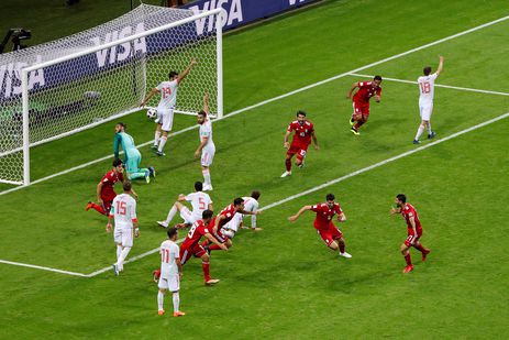 A abertura do placar viria em seguida, mas do outro lado. Diego Costa recebeu a bola na área e o defensor tentou cortar, mas chutou a bola nas pernas do brasileiro naturalizado espanhol e a pelota entrou no canto direito de Beiranvand. A Espanha finalmente chegava ao seu gol.
