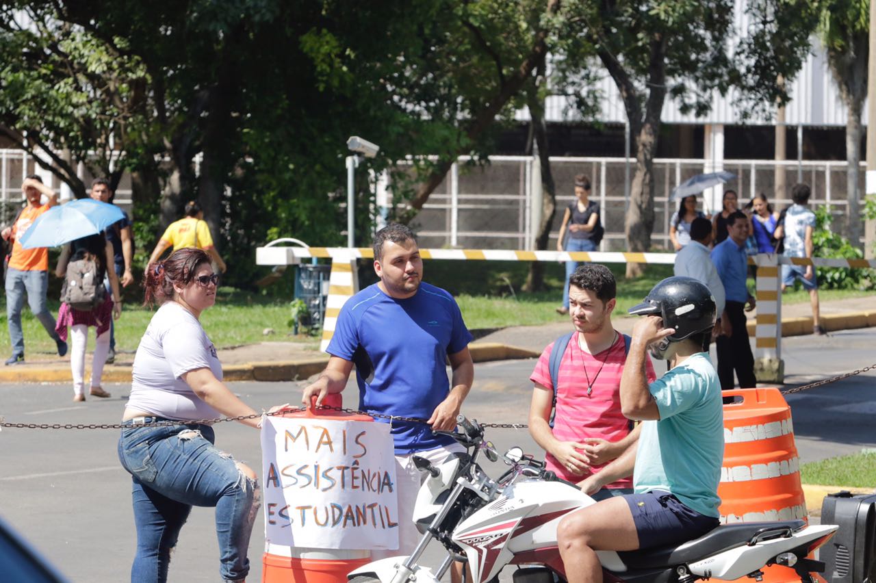 Um grupo de 30 estudantes segue bloqueando a entrada do Campus Cuiabá, da Universidade Federal de Mato Grosso (UFMT), desde a manhã desta terça-feira (24). Eles protestam contra a proposta de aumentar, a partir de maio, o valor da refeição, que hoje custa R$ 1.