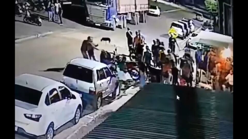 Imagens de segurança registraram o momento em que o casal conversava em uma festa no bar “Esquinão”, quando o suspeito se aproxima por trás e parte para cima de Flávio, desferindo vários golpes. Fátima tenta impedir a agressão, mas também é ferida com facadas.
