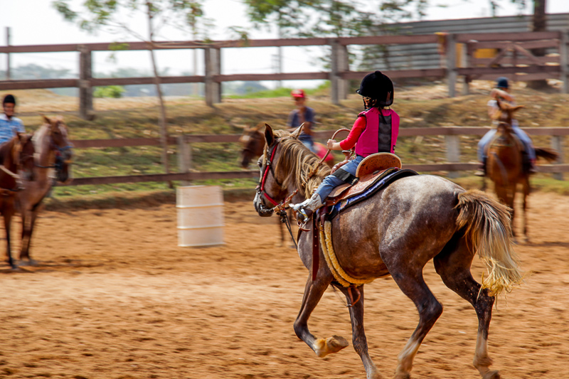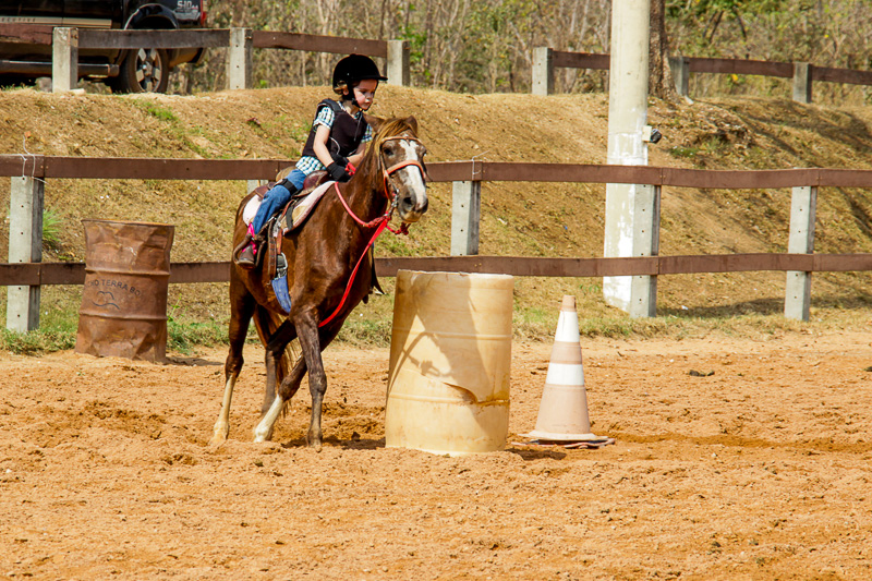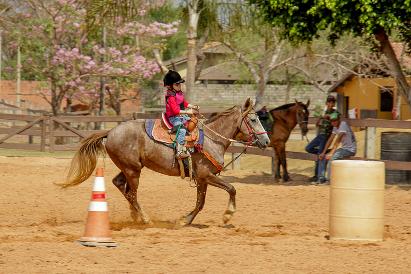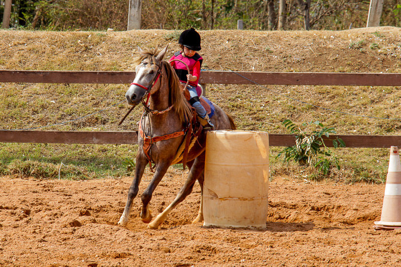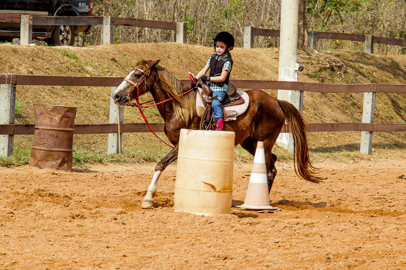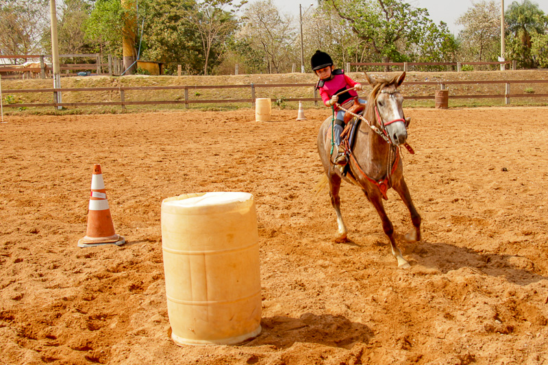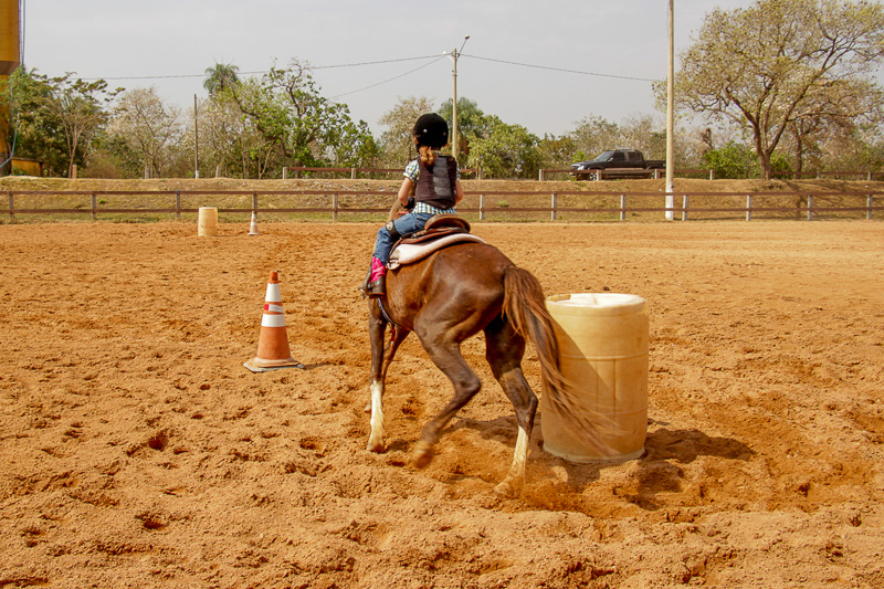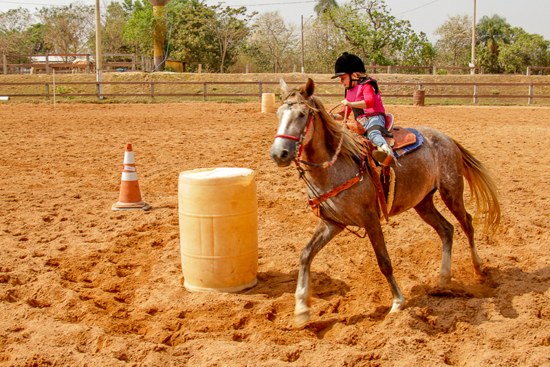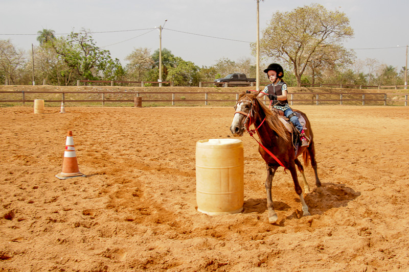 “Eles fazem a prova três tambores. Ganha quem for mais rápido e não penalizar, não derrubar o tambor. Quem derruba é penalizado com cinco segundos. Encostar pode, relar pode, não pode derrubar. Pode usar a mão para segurar o tambor, mas não pode machucar o cavalo, ferir, sangrar, ai está eliminado”, disse o “tio Cowboy”, como o professor é carinhosamente chamado pelas crianças.