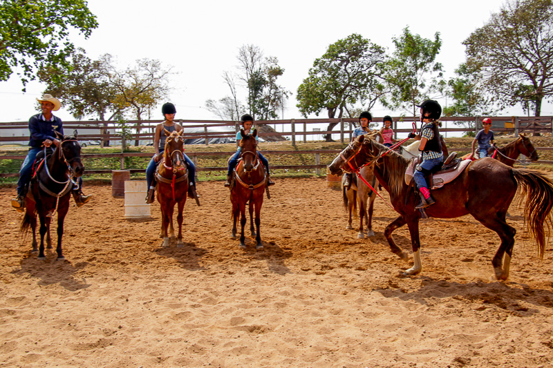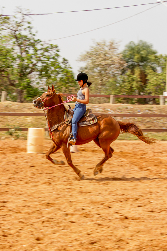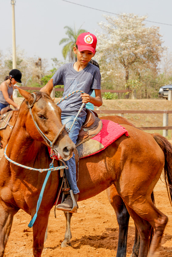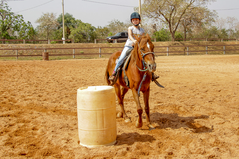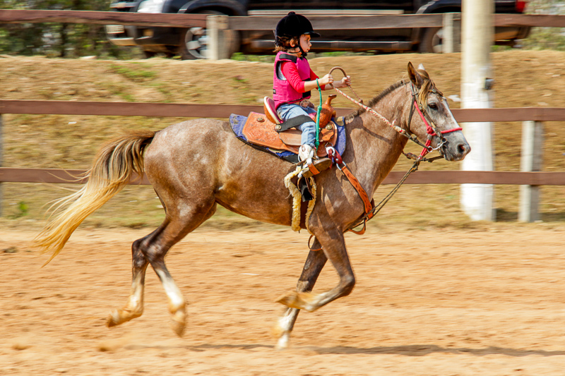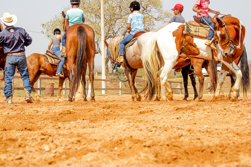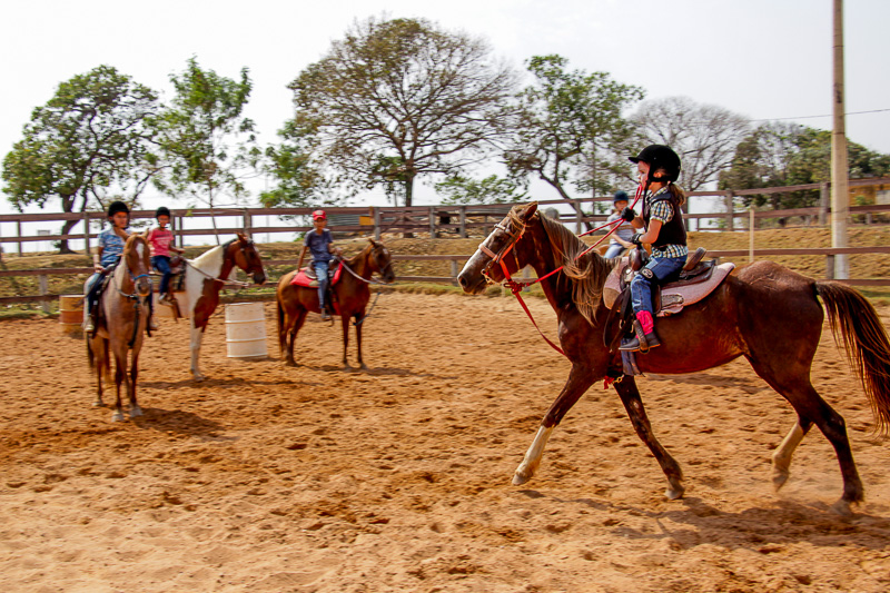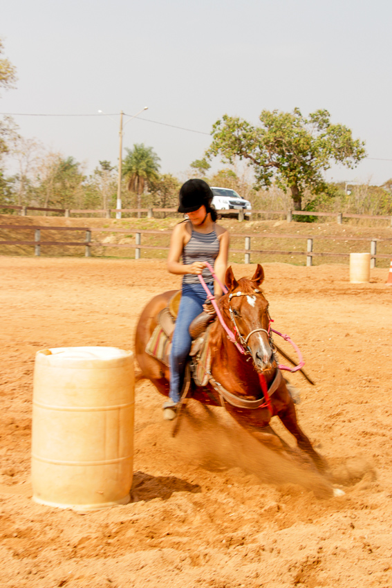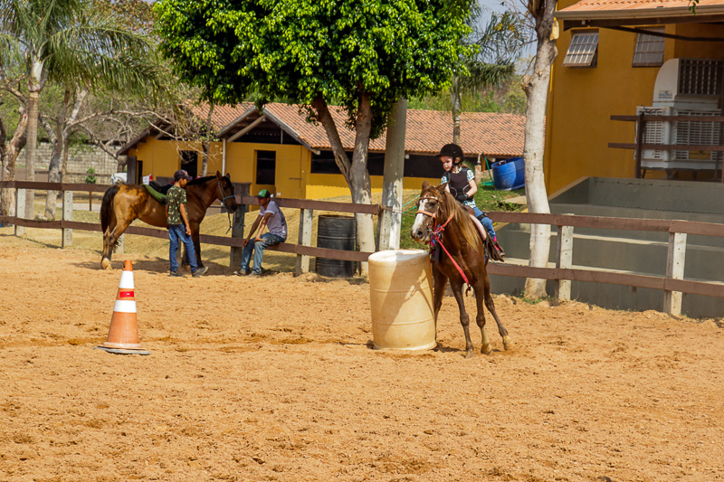 “Eles fazem a prova três tambores. Ganha quem for mais rápido e não penalizar, não derrubar o tambor. Quem derruba é penalizado com cinco segundos. Encostar pode, relar pode, não pode derrubar. Pode usar a mão para segurar o tambor, mas não pode machucar o cavalo, ferir, sangrar, ai está eliminado”, disse o “tio Cowboy”, como o professor é carinhosamente chamado pelas crianças.