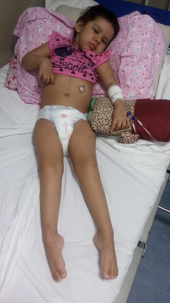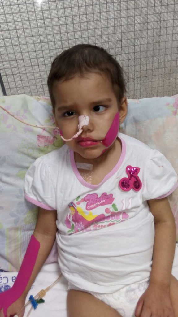 No inicio do mês, a garotinha precisou ser entubada, ficou quatro dias na UTI, e hoje se encontra internada na ala de oncologia pediátrica da Santa Casa, com quadro clínico de intercorrência – quando o paciente apresenta febre, secreção e infecções. Mas não corre risco de vida.
