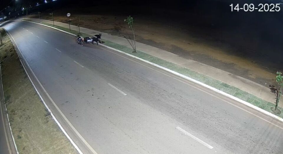 O crime ocorreu na madrugada de domingo (14), por volta da 1h30, na Avenida Fernando Corrêa da Costa, no Jardim Belo Horizonte. As imagens mostram o suspeito trafegando em uma motocicleta com reboque lateral, quando para ao lado do canteiro, retira rapidamente alguns tapetes de grama recém-plantados pela Prefeitura Municipal e foge com o material.