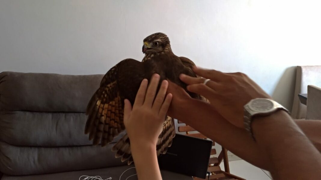 Pouco depois, o gavião foi libertado, momento gravado em vídeo por Welington, que publicou em seu Facebook com a mensagem: “Dia da caça. O gavião caçador de passarinhos ficou sem a presa e bastante assustado”.