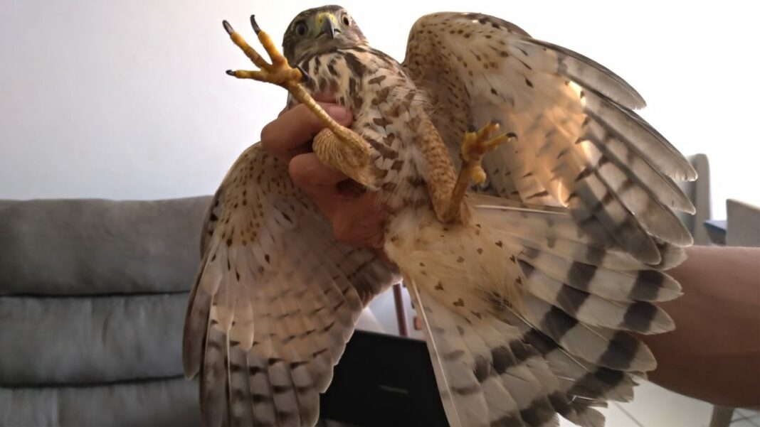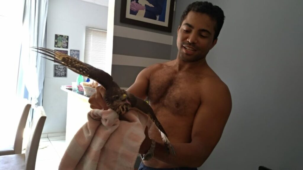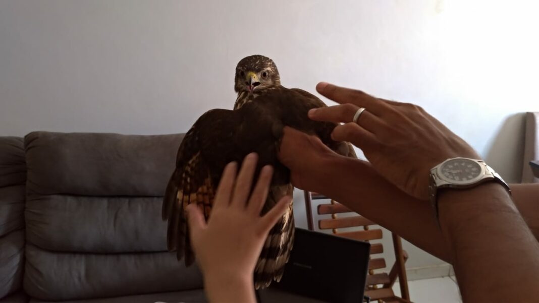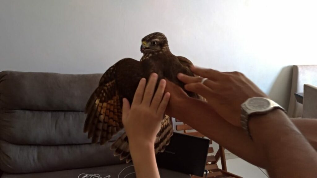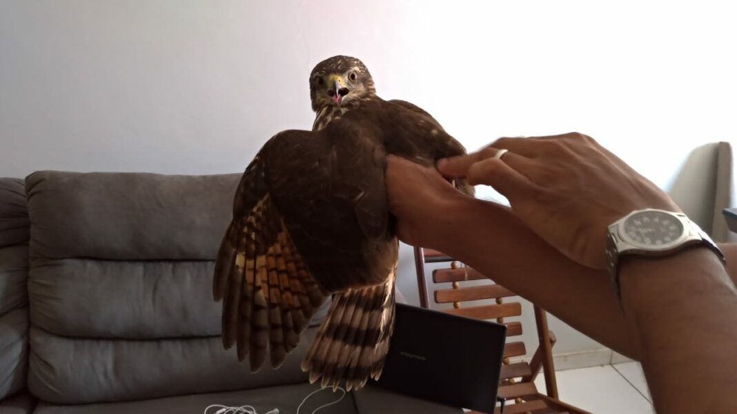 “O passarinho acabou se salvando, acho que não era o dia dele morrer”, disse o jornalista. “No começo eu assustei, falei: ‘cara, um gavião’. Ai eu queria pegar o gavião, mas fiquei receoso dele me bicar, porque ele tem um bico forte, ele é um predador. Aí eu peguei uma toalha para pegar ele, mas vi que ele estava mais assustado do que eu”.