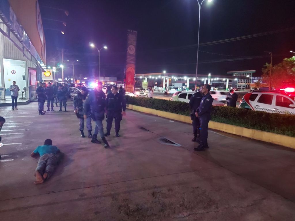 Um policial militar que estava no estabelecimento realizando a manutenção do seu veículo viu a cena, se identificou como policial e mandou o jovem soltar a arma.