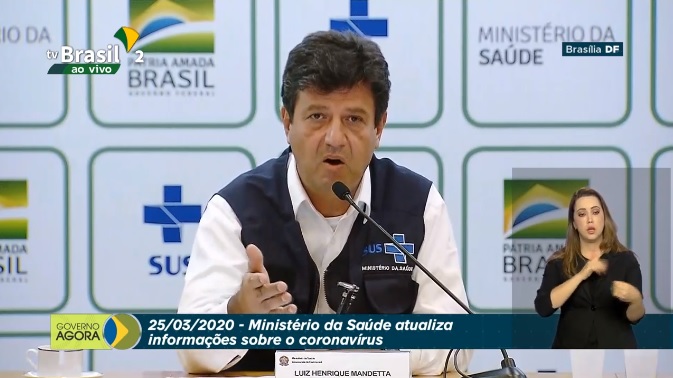 Todos os ministros presentes falaram antes do Mandetta. Essa também foi a primeira vez que o atendimento à imprensa sobre a pandemia foi feito no Palácio do Planalto, e não mais no Ministério da Saúde.