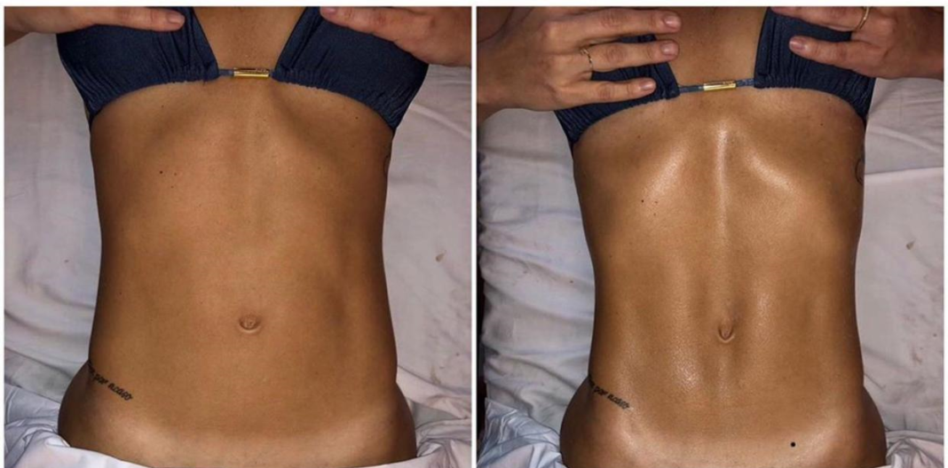 Outro item que faz parte do protocolo é a foto do antes e depois. E é impossível não ficar surpresa com o resultado ao ver pernas, braços e cintura mais finas.