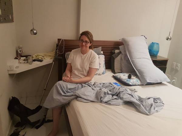“Eu não posso ficar em pé por mais de uma hora, que eu me quebro; então eu fico deitada numa cama. Eu tenho 36 anos, sou médica, uma médica que sempre ajudou as pessoas, já fiz vários projetos humanitários, gosto de viver, amo a vida”, disse. “Mas essa doença tirou a minha alegria de viver, porque há três anos eu estou assim, em uma cama”.