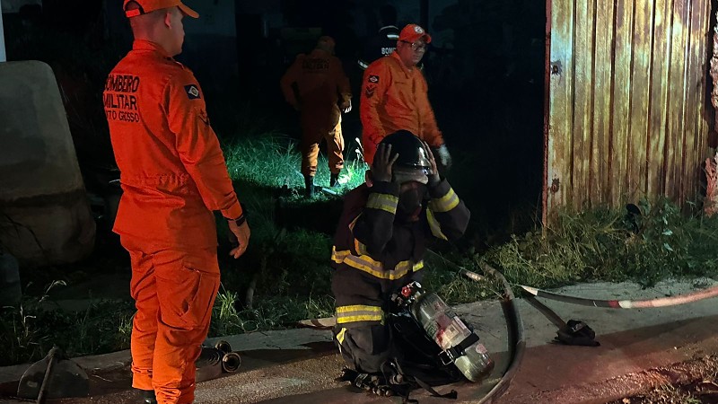 Um incêndio de grandes proporções destruiu um barracão de madeira e mobilizou moradores do bairro Morada do Ouro, em Cuiabá, na noite de domingo (9). A cena chamou atenção dos vizinhos, que tentaram controlar as chamas com baldes, mangueiras e até água retirada de uma piscina próxima.