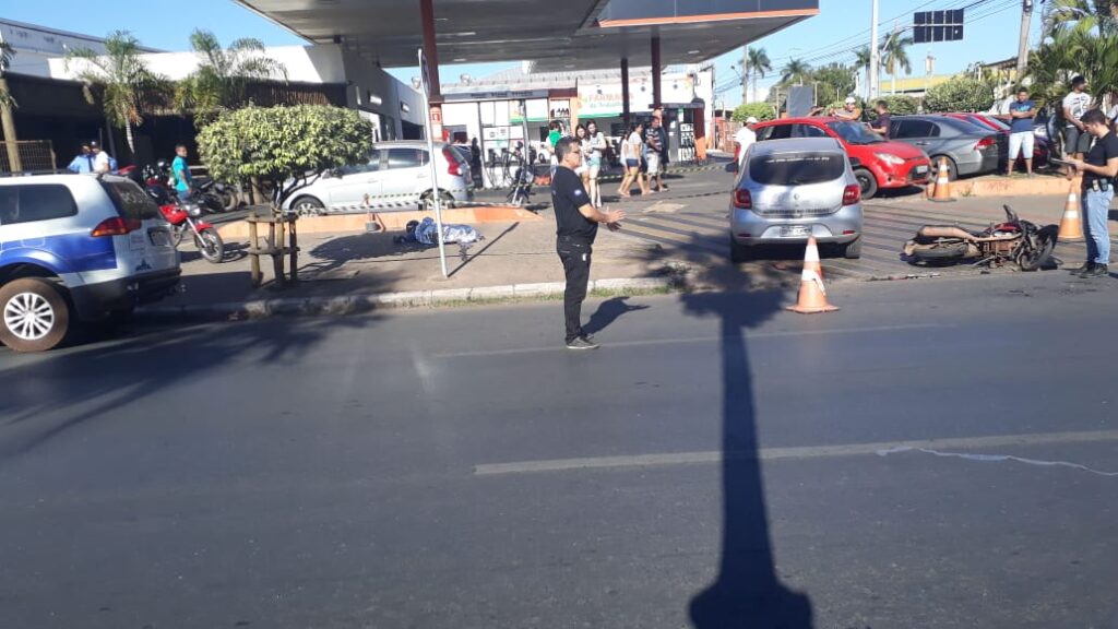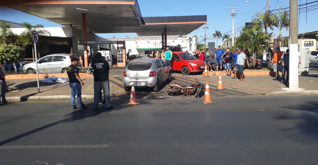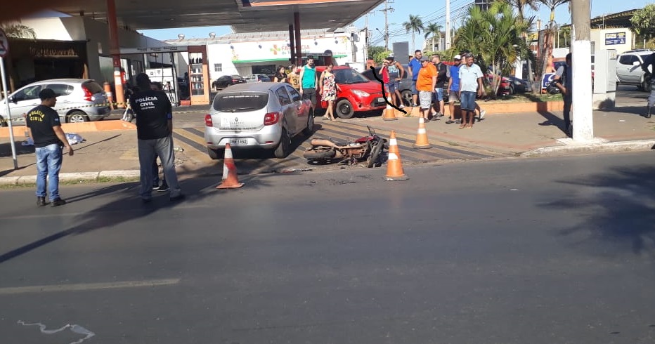 Um motociclista morreu depois de colidir com um veículo Renault Sandero no início da tarde deste sábado (30), na entrada do Posto Idaza, no Bairro Porto, em Cuiabá, ao lado do Shopping Camelô.