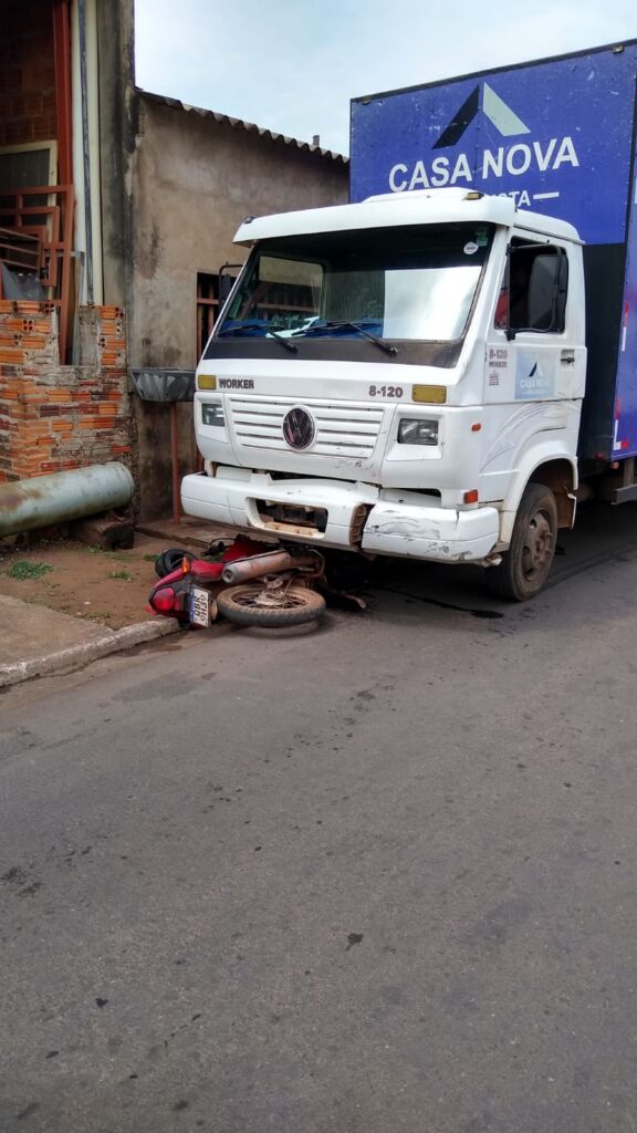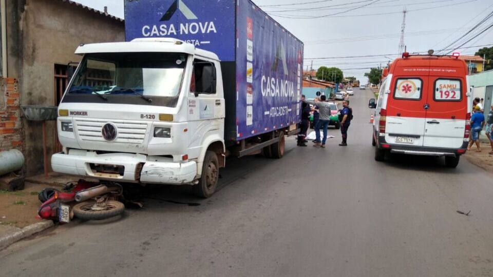 Um motociclista identificado como Luciano José Vicente, 35 anos, morreu há pouco, após ser atingido por um caminhão no Bairro Mapim, em Várzea Grande.