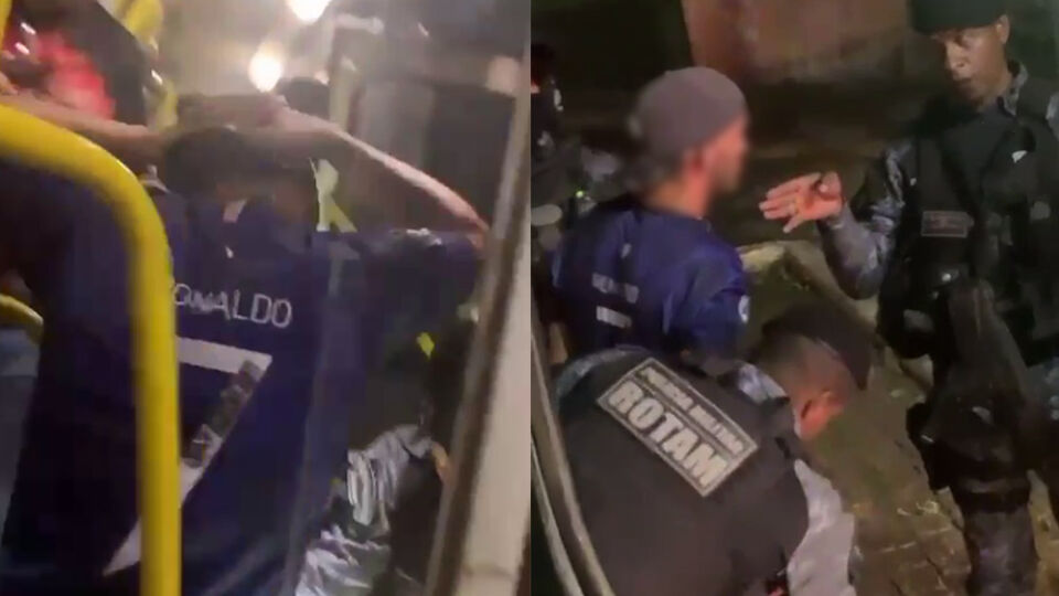 Um suspeito foi localizado dentro do coletivo e ele estava com uma arma artesanal municiada com balas calibre 38 na cintura. Ele também estava com uma porção de cocaína.
