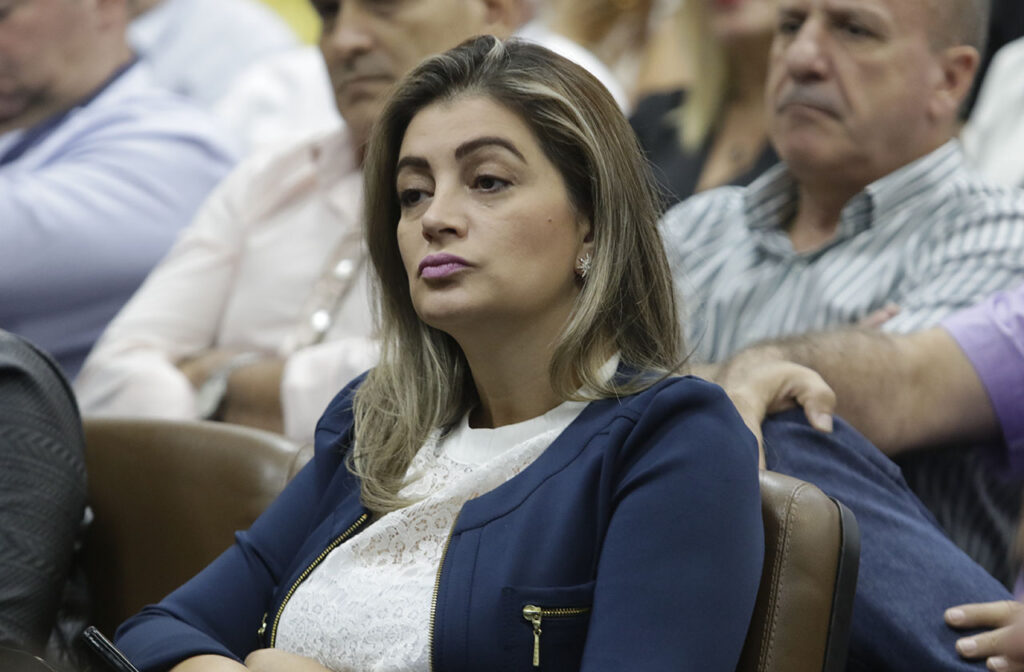 A prefeita retrucou a promotora de Justiça. “Me parece! Então, primeiro a senhora faz o seguinte: quando for para ‘me parece’, porque estou sendo julgada pelo me parece até então, a senhora pede os motivos dessa devolução desses recursos”.