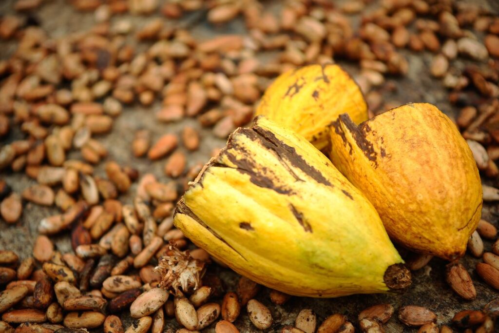 Os altos rendimentos ficam com grupos de venda de produtos à base de chocolate no varejo, como Garoto, Lacta e Hersheys, que Estes obtêm o cacau de empresas processadoras, que compram o produto de atravessadores. Estes adquirem de fazendeiros, que usam trabalhadores e pequenos produtores, geralmente na forma de parcerias.