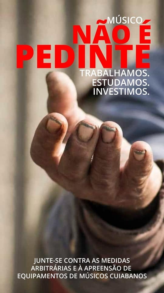 Em solidariedade a músicos cuiabanos que tiveram equipamentos apreendidos nesta semana, em um bar na Praça da Mandioca, artistas estão mobilizados em uma campanha contra o que consideram “medidas arbitrárias”. Eles aproveitam para conscientizar o público de que o trabalho do músico depende de ferramentas como instrumentos e equipamentos.