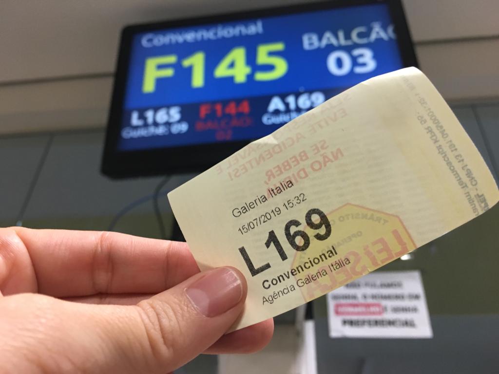 Pego a senha, espero minha vez. Sou atendida, pego as guias e corro novamente para o autoatendimento. Tempo está passando.
