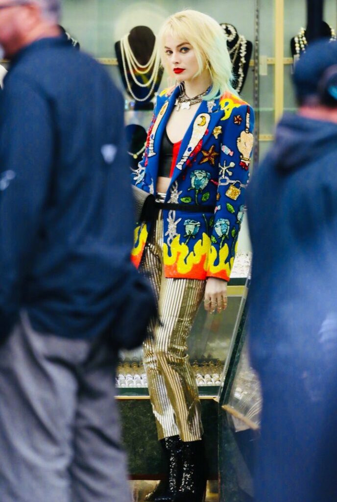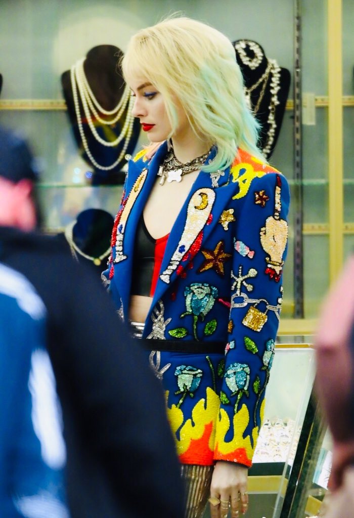 Dessa vez, é possível ver apenas Margot Robbie como a vilã apaixonada pelo Coringa. Ela aparece com várias roupas e cabelos, entre eles um visual setentista com madeixas loiras e um termo com várias figuras. Em uma cena gravada em vídeo ela se pendura no que parece ser um food truck mexicano.