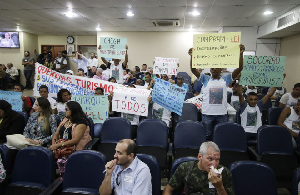 “Nós temos trilhas fechadas, lixo, falta de cuidado. O turismo está um caos”, critica. “Eu não acredito que a estadualização vá piorar, cada proprietário preserva mais a vegetação do parque do que o próprio ICMBio”, diz. Simone e outras quinze pessoas compareceram a audiência desta segunda com cartazes criticando a administração.