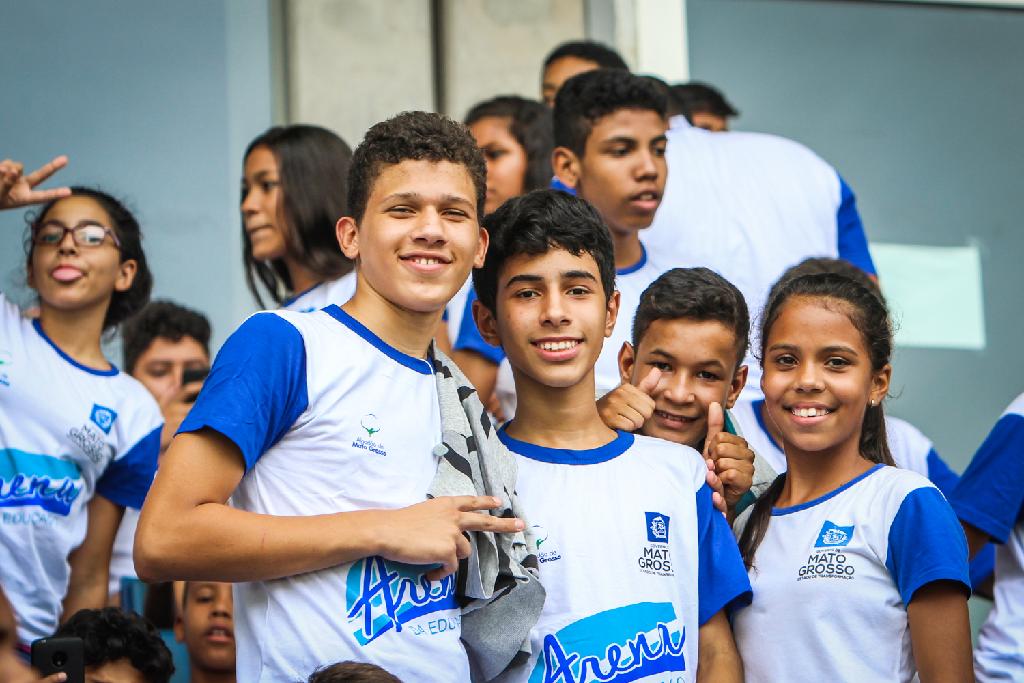 Quatrocentes mil alunos da rede estadual de educação receberão uniformes para o ano letivo de 2018. Na tarde desta quarta-feira (21.03), foi realizado um evento na Arena Pantanal com a presença de mais de 2,5 mil alunos, escolhidos para representar os estudantes das 754 escolas estaduais que receberão as 800 mil camisetas disponíveis. Esta é a terceira entrega feita pelo governo de Mato Grosso, somando um total de 2,4 milhões de camisetas confeccionadas.