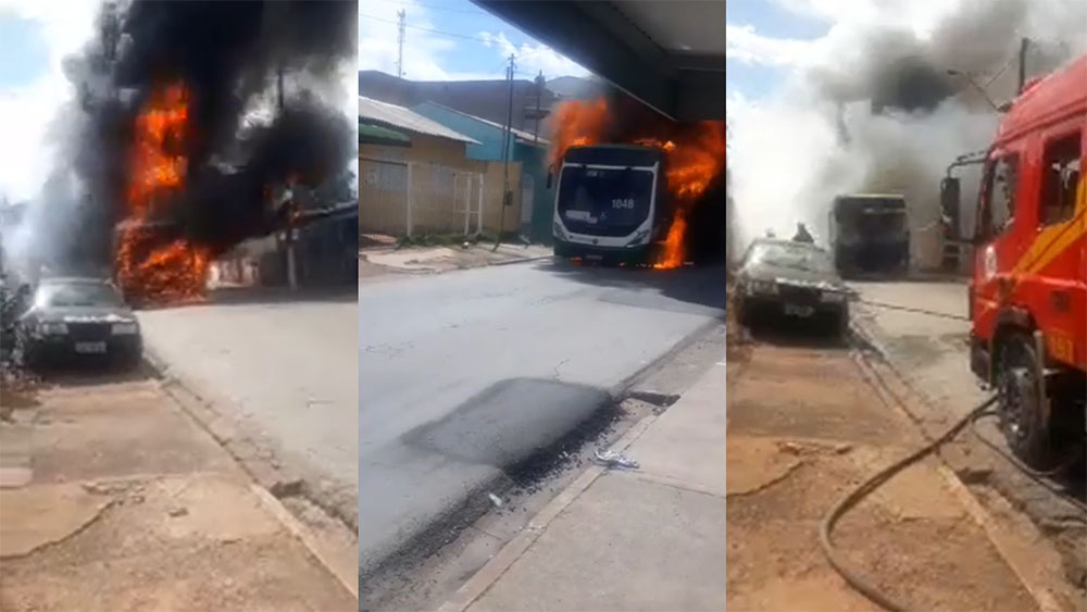 Um ônibus do transporte municipal de Cuiabá pegou fogo no início da tarde deste domingo (13) no Bairro Novo Paraíso, na Capital, em frente à Igreja Congregação Cristã do Brasil.