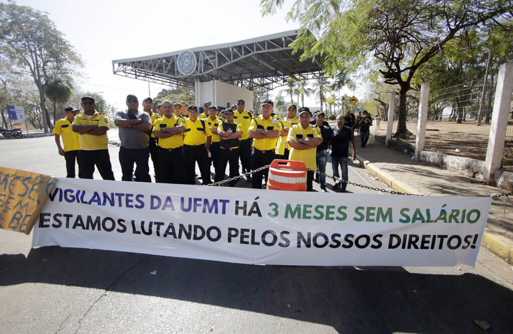 A universidade tem 64 vigilantes e uma parcela deles diz que está com 3 meses de salários em atraso. O restante afirma que está indo para o quarto mês sem receber.