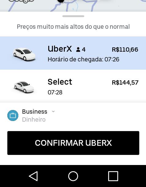 Cerca de duas horas depois do início do horário de pico dos ônibus, a reportagem do LIVRE fez a simulação de algumas das corridas enviadas pelos leitores. E embora o período de caos já tivesse passado, os preços continuaram elevados.
