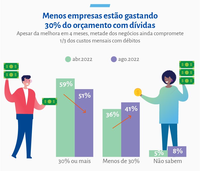 Além disso, o último levantamento também mostra que 37% dos pequenos negócios estão com as dívidas sob controle, enquanto 39% não apresentam dívidas. No mesmo período do ano passado, em levantamento semelhante feito pelo Sebrae e a Fundação Getúlio Vargas (FGV), os percentuais eram de 35% tanto para as empresas com dívidas em dia quanto para as empresas sem dívida alguma.
